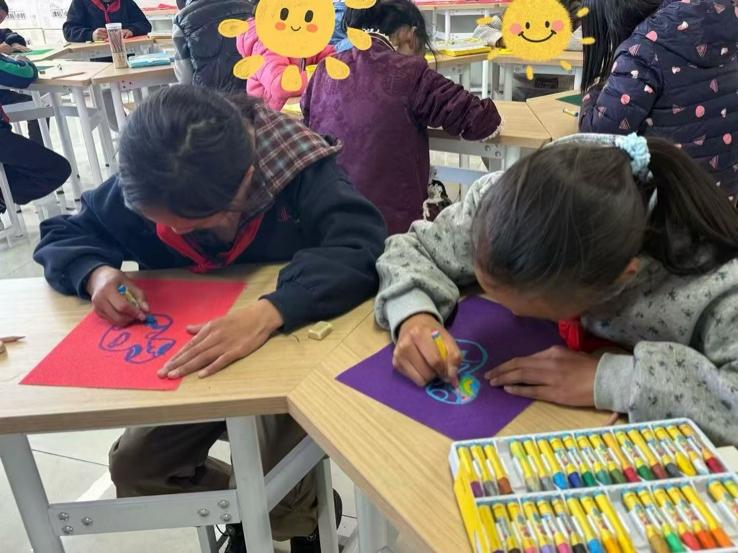 公益中国人讯:2026年新春伊始,多绕嘎目九年一贯制学校的美育教室里,孩子们经常围着刚完成的创作叽叽喳喳 —— 有人画草原格桑花,有人绘雪山羊群,稚嫩笔触里满是大胆想象与鲜活热爱。